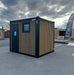 Versão: Edifício sanitário modular (WC-URINOIR-DOUCHE-LAVABOS) + Revestimento em aço com aspeto de madeira clara, com garantia de 30 anos.